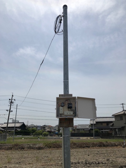 電柱から目的の電気使用場所へ電線を持ってくるために電気ポールを建てます。